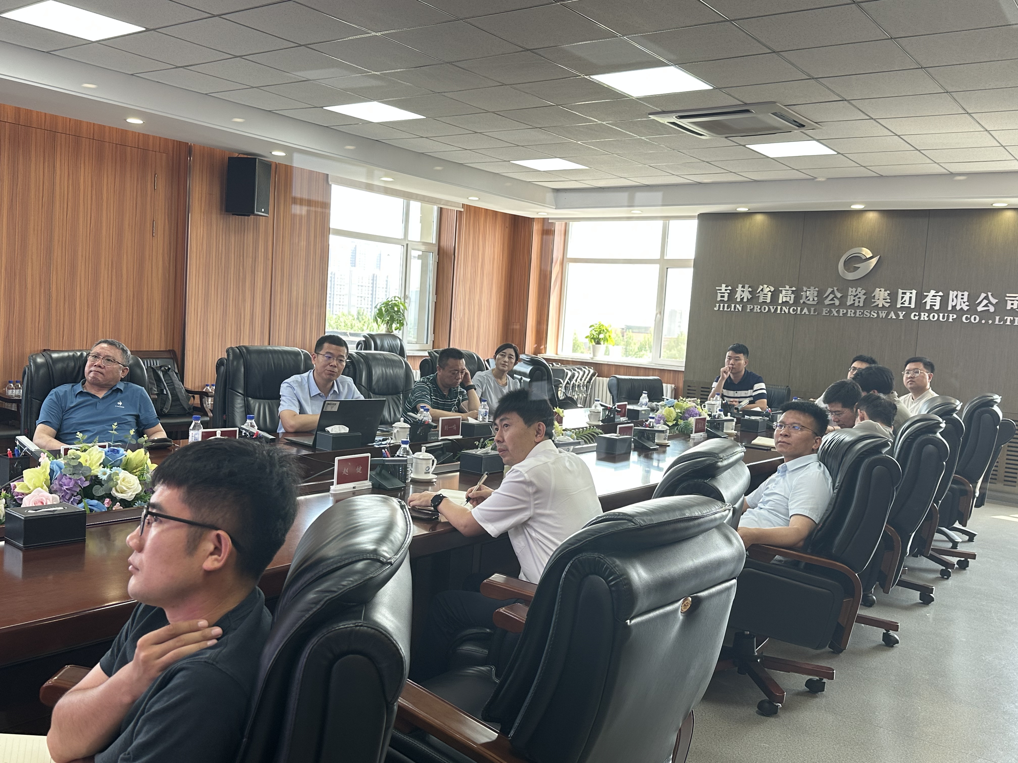 6月25日,tyc122cc太阳成集团与吉林省高速公路集团开展校企合作交流活动,双方围绕产学研深度融合、科研成果转化等议题展开深入探讨,旨在推动交通领域技术创新与人才培养协同发展。tyc122cc太阳成集团经理别一鸣、经理助理谭国金等一行7人赴吉林省高速公路集团开展交流,集团副总经理杨敏捷、总经理助理赵健、工程管理部主任申发义等8人出席会议。