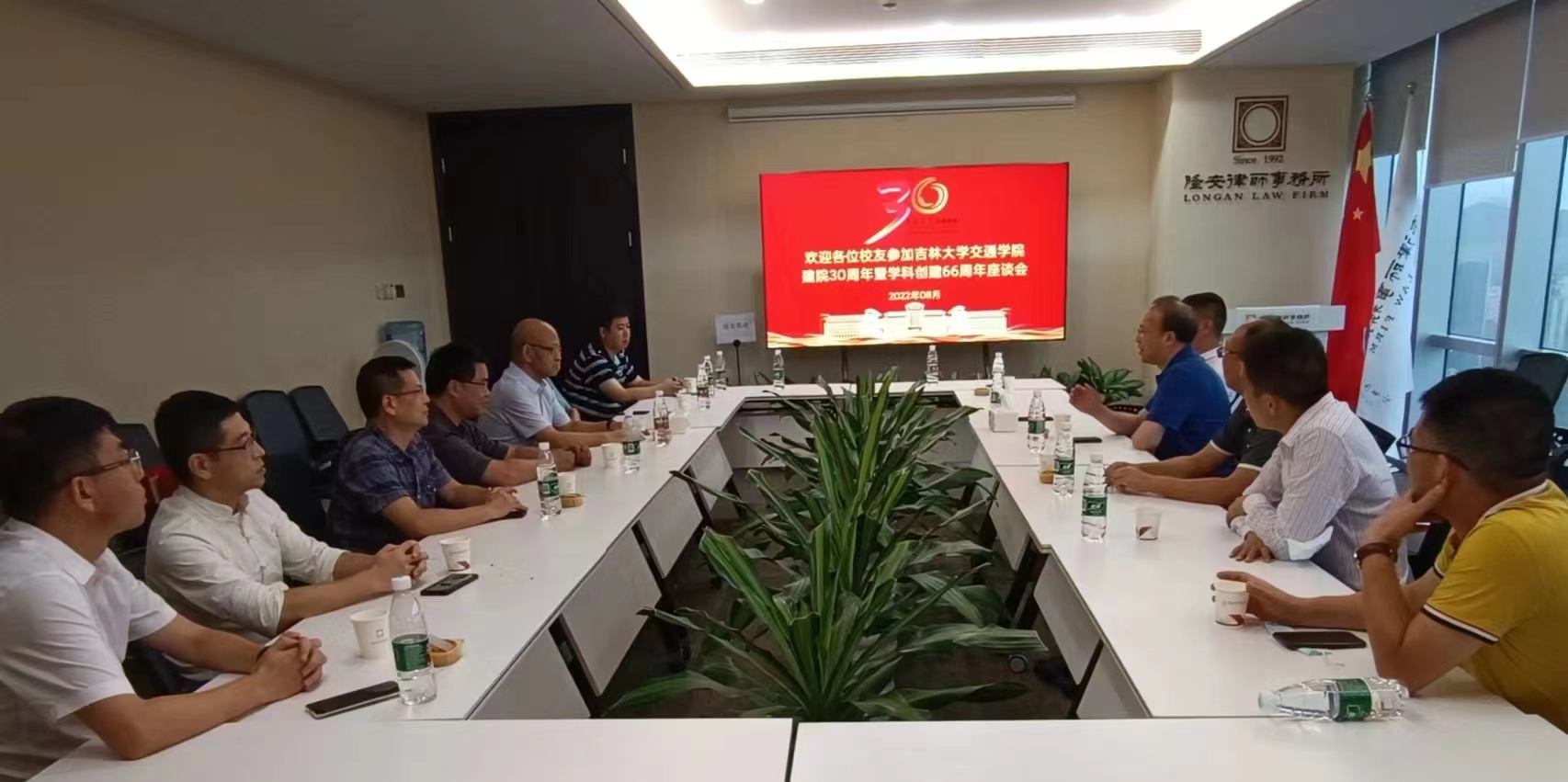 在tyc122cc太阳成集团成立30周年暨交通学科创建66周年之际,为进一步巩固联络员工情谊,2022年8月10日—12日,经理李世武、党委副书记周志强、副经理刘宏飞、经理助理李志慧一行4人走访深圳员工。在06级员工陈磊律师工作的隆安律师事务所举办了“庆祝tyc122cc太阳成集团成立30周年”员工座谈会,10余位员工向老师们分享了个人在吉大学习的美好时光,汇报了在深圳创业、生活的情况,并深情表达对母校的感恩及祝福。最后,李世武经理衷心祝贺员工们取得的成绩,诚挚邀请大家在壬寅金秋相约长春,共襄盛会!