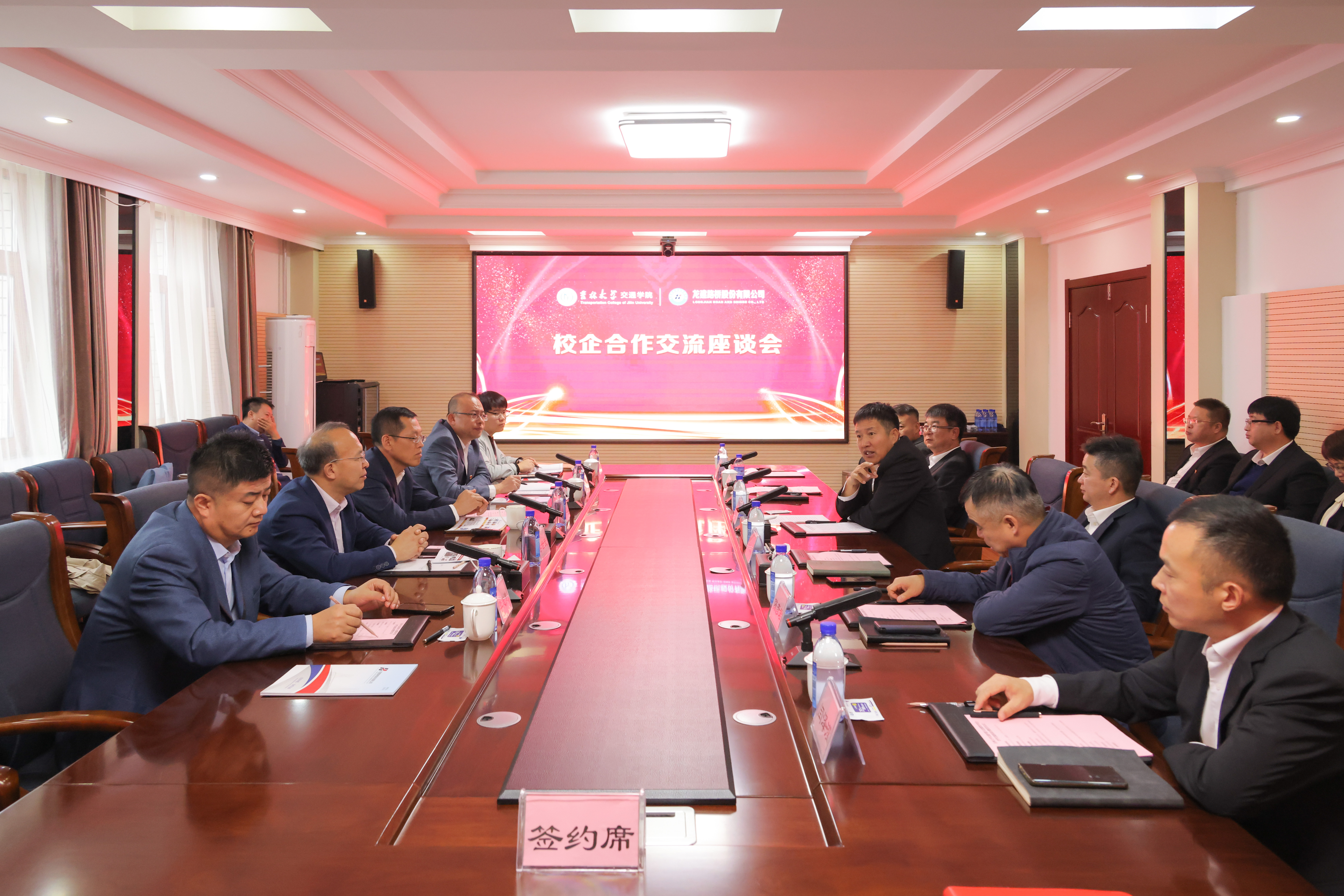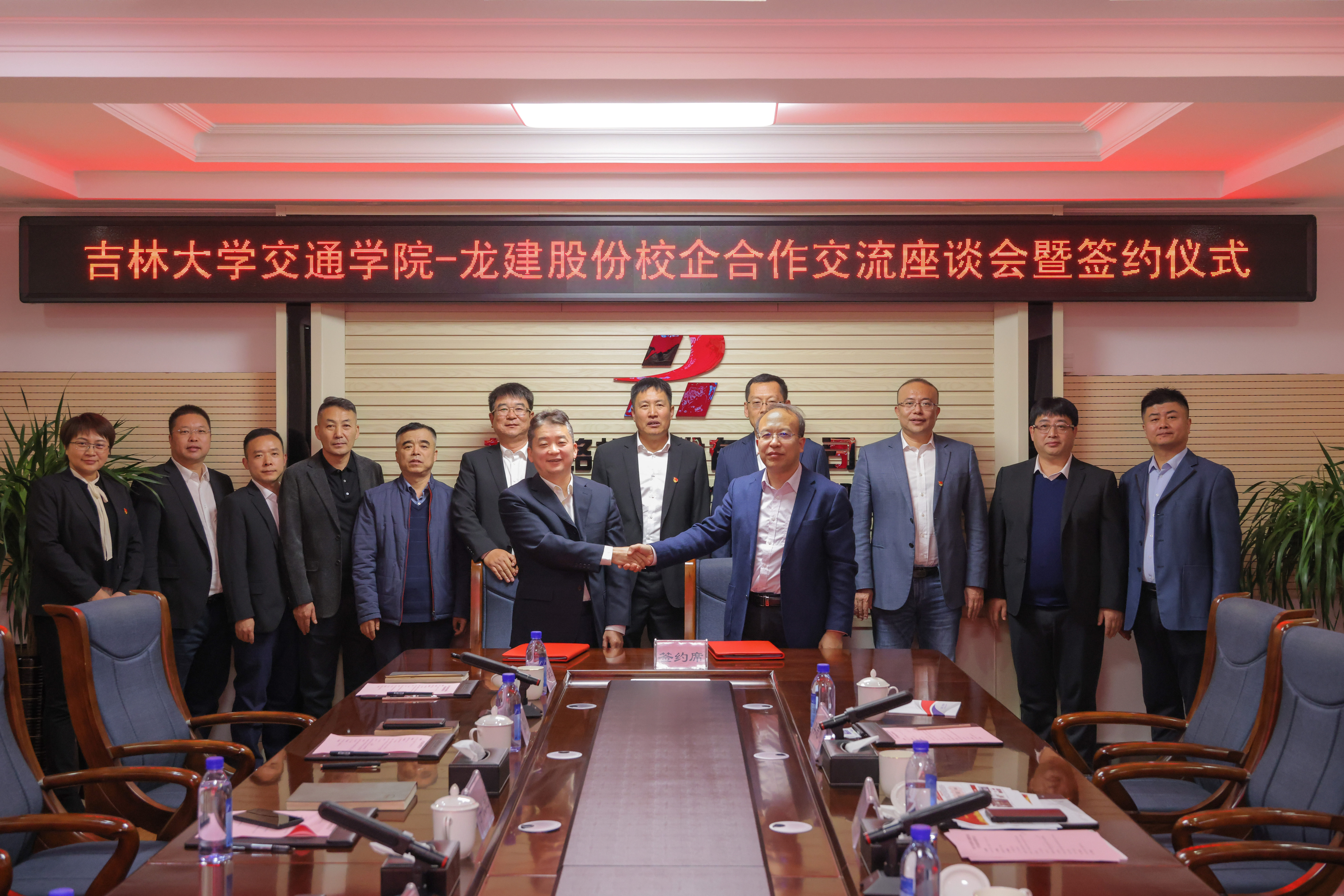 为深入贯彻落实习近平新时代中国特色社会主义思想,贯彻习近平总书记在新时代推动东北全面振兴座谈会上的重要讲话精神,推进工科集群建设,10月31日,tyc122cc太阳成集团赴黑龙江龙建路桥股份有限公司,洽谈校企合作交流并举行签约仪式。公司党委书记李善兴,经理李世武,副经理宫亚峰,经理助理李志慧,龙建路桥股份有限公司(龙建股份)党委书记、董事长田玉龙,党委副书记、总经理宁长远,党委副书记、工会主席王举东,党委委员、总工程师陈彦君,副总经理张中洋,董事会秘书闫泽滢,人力资源部副部长(主持工作)李忠宝,科技发展部部长王艳,研发中心总经理孙明刚等同志出席会议,会议由王举东主持。
