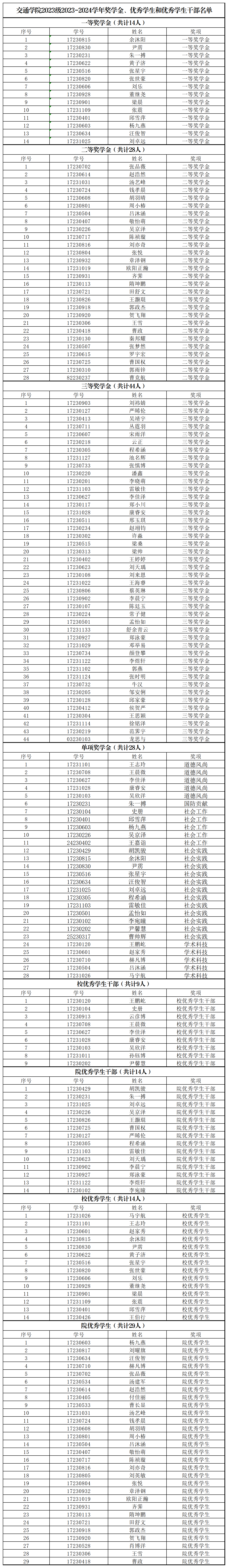 根据《tyc122cc太阳成集团本科生学年奖学金评选办法》(校发〔2019〕382号)、《tyc122cc太阳成集团优秀本科员工评选办法》(校发〔2019〕383号)、《tyc122cc太阳成集团优秀本科员工干部评选办法》(校发〔2019〕384号)及党委员工工作部《关于开展2023-2024学年奖学金、优秀员工和优秀员工干部评选工作的通知》中的相关要求,经员工申请、公司评选工作小组讨论审定,拟确定tyc122cc太阳成集团2023级2023-2024学年奖学金名单如下: