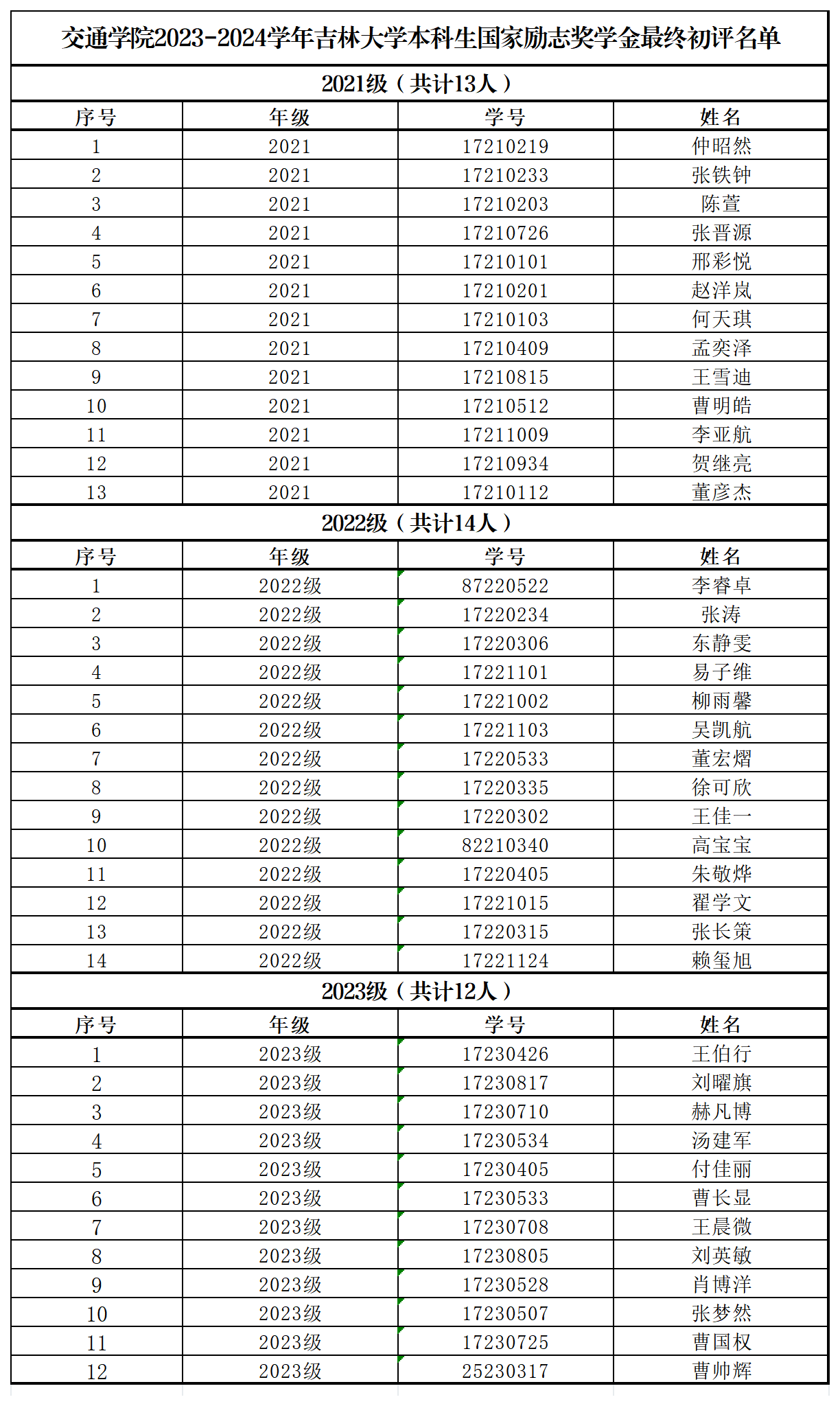 按照党委员工工作部《关于开展2023-2024学年tyc122cc太阳成集团本科生国家励志奖学金评审工作的通知》和《关于做好2024年秋季学期tyc122cc太阳成集团国家奖助学金工作的补充通知》相关要求,结合《tyc122cc太阳成集团本科员工国家励志奖学金评审办法》(校发〔2020〕250号)有关规定,经员工个人申请、资格审查、公司考核,研究提出tyc122cc太阳成集团2023-2024学年tyc122cc太阳成集团本科生国家励志奖学金最终初评结果,原有《tyc122cc太阳成集团2023-2024学年tyc122cc太阳成集团本科生国家励志奖学金初评名单》作废,现将结果公示如下: