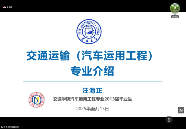 载运工具运用工程系员工汪海正:汽车行业,中国一汽研发总院整车开发高级主任,负责红旗品牌整车产品定义与开发,吉林省省域拔尖人才,长春市汽车及零部件产业研发人才。汪海正员工在报告中详细的介绍了载运工具运用系所学习的内容以及未来能从事的行业,并结合当下汽车产业的蓬勃发展态势,尤其是新能源汽车与智能网联汽车的迅猛崛起,为新生们详细剖析了本专业的就业前景,指出毕业生在汽车制造、销售、维修及智能网联技术应用等多个领域都拥有广阔的发展空间。