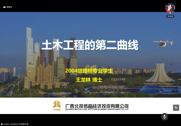 道路与桥梁工程系王龙林:博士,教授级高级工程师,现任广西交投低空经济投资有限公司副总经理,全国青联委员、广西青联常委。主要从事桥梁监测、低空空域监管等交叉学科领域研究。获得过全国创新争先奖,全国青年岗位能手,全国交通建设工匠,广西五四青年奖章、八桂青年拔尖人才、交通部青年科技英才、广西优秀共产党员、省部级科技进步奖7项等荣誉称号。王龙林员工用自己的亲身经历让2024级新生明确该专业未来的从业方向,并告诉员工们,该专业具有很大的发展空间,大家要正确看待网络上的负面评价,王龙林以“土木工程的第二曲线”为主题,从行业现状出发,分析了传统土木工程面临的挑战与机遇,指出绿色建筑、智能建造、BIM技术等是土木工程行业新的发展方向,鼓励新生们在学习注重创新思维培养,掌握前沿技术,为未来投身行业变革做好准备。