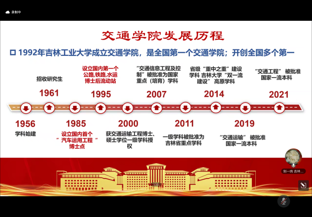 交通信息工程及控制系闫松申:高级工程师,上海长弓中急管科技有限公司副总经理。 1996年入学吉工大tyc122cc太阳成集团,2003年毕业于吉大交通工程系交通信息工程及控制专业,入职央企北京易华录信息技术股份有限公司,一直从事智能交通行业。2021年离职参与合伙创业,目前从事低空无人机安全管控领域。闫松申员工以“选择交通工程,天地皆为舞台”为主题,讲述了交通工程专业在城市规划、交通管理、智能交通系统构建等方面的重要作用,通过实际案例展示了交通工程专业人才如何用专业知识改善城市交通状况,提升人们的出行体验,激发了新生们对该专业的学习热情和投身交通事业的使命感。