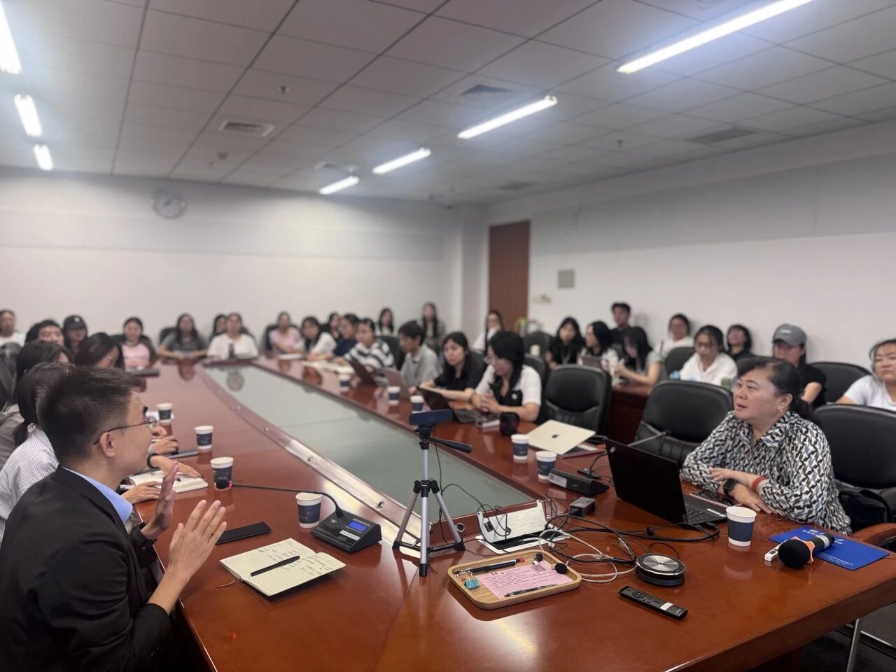 高万红教授鼓励高校在课程设计中更多融入服务学习元素,并建立完善的督导机制,加强服务学习过程中的同伴支持与教师支持,确保员工在安全、积极的环境中参与实践。吴帆老师和王淼老师深表认同,明确表示支持服务学习与专业课程的长期结合,认为这一融合可以为员工专业成长与心理发展搭建更优质的平台,可进一步探索具体结合路径与实施策略。参会师生围绕如何服务学习的实践模式、干预研究的作用机制、社会工作督导的意义与价值、员工主体性的重要性等内容展开热烈讨论。高万红教授耐心解答了师生的提问,并就未来合作方向进行了深入交流。