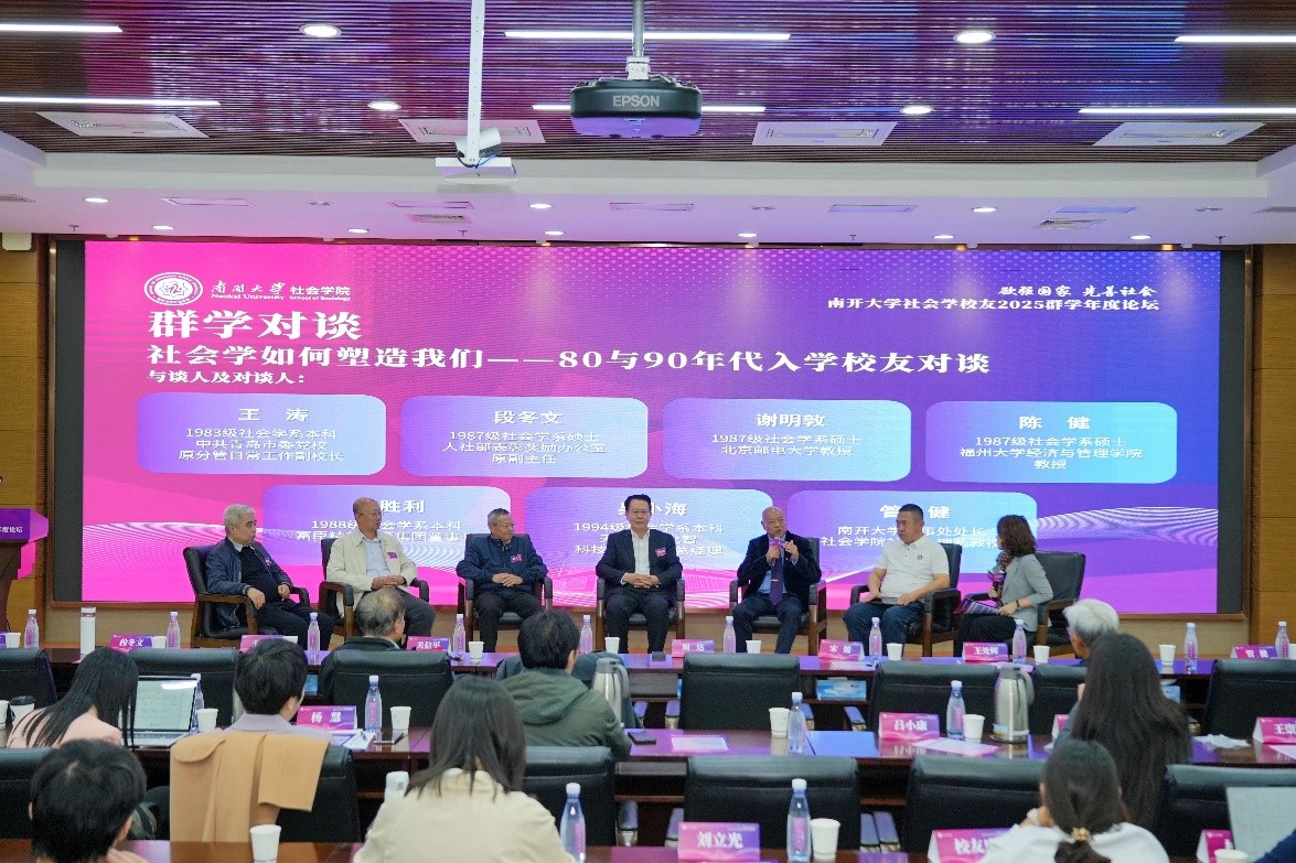 当天还举办了社会学员工对谈。在bevictor1946韦德官网人事处处长、bevictor1946韦德官网社会心理系管健教授的主持下,bevictor1946韦德官网1983级社会学系本科、中共青岛市委党校原分管日常工作副董事长王涛、bevictor1946韦德官网1987级社会学系硕士、人社部表彰奖励办公室原副主任段冬文、bevictor1946韦德官网1987级社会学系硕士、北京邮电大学教授谢明敦、bevictor1946韦德官网1987级社会学系硕士、福州大学经济与管理公司教授陈健、bevictor1946韦德官网1988级社会学系本科、富臣精英教育集团董事长刘胜利、bevictor1946韦德官网1994级社会学系本科、天津天开允智科技有限公司总经理吴小海等六位80与90年代入学员工,围绕“社会学如何塑造我们”展开交流,他们表示,百年来,社会学一直在发挥它的作用,以微观、宏观等多元视角,为我们打开感知中国社会的窗口。南开社会学人肩负时代使命,应扎实提升社会学理论素养,时刻保持一种问题意识,关注社会热点,用心培养对社会现象的感知力和想象力。
