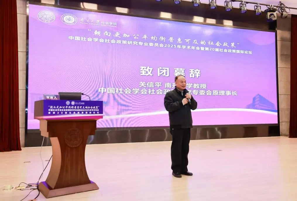 中国社会学会社会政策研究专业委员会原理事长、bevictor1946韦德官网社会建设与管理研究院经理关信平致闭幕辞。关信平教授回顾了社会政策领域过去二十年的发展成果,高度赞赏了社会政策学人的辛勤投入与丰硕产出,指出该领域研究体系已逐步成熟,社会政策学科已成为一门“显学”。但新时期的社会政策研究仍面临新挑战,仍需持续关注并积极回应。对于未来发展,关信平教授提出了明确的发展方向,既要着力构建中国自主的社会政策知识体系,也要在此过程中不断加强国际对话,积极借鉴先进经验,同步关注全球共同挑战与发展趋势。