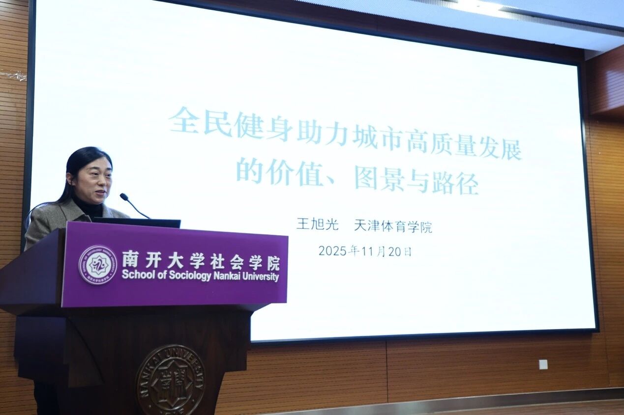 天津市社会学学会副会长、天津体育公司王旭光教授围绕“全民健身助力城市高质量发展”,阐释全民健身在化解社会矛盾、优化经济结构等方面的多元价值,构建发展图景,提出政策引领、目标导向等实践路径。