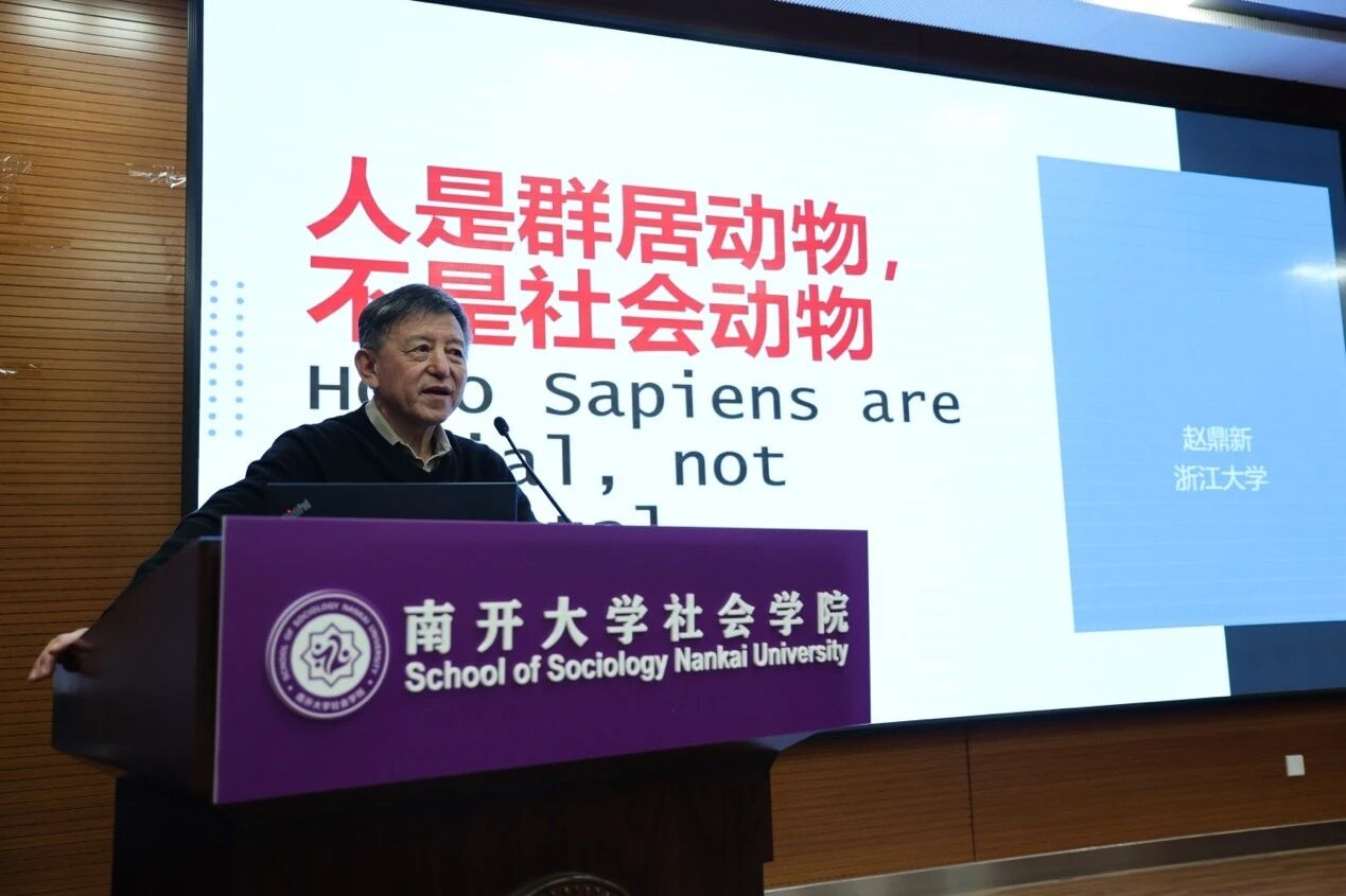 浙江大学人文高等研究院经理赵鼎新教授以“人是群居动物不是社会动物”为题,从“社会学”译名争议切入,主张将sociology理解为“群学”以保持对社会现象的批判性,回归人类群居动物本质。他还分析了中国特色因果关系中的末梢重现象,并梳理墨子、老子等传统思想中缓解社会张力的方案,为社会学研究提供新视角。