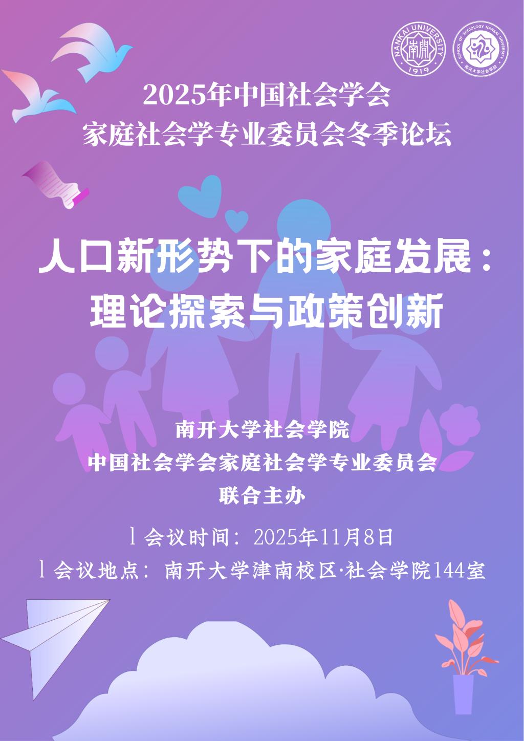 2025年中国社会学会家庭社会学专业委员会冬季论坛——人口新形势下的家庭发展:理论探索与政策创新”
